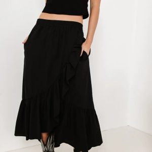 Elastic Waist Mini Skirt Lined Fringed Ruffle Detail Side Zipper Closure Hook