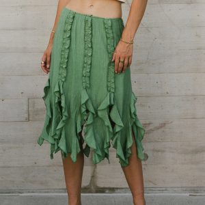 Arista Ruffled Midi Skirt in Sage - FINAL SALE