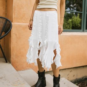 Arista Ruffled Midi Skirt in White - FINAL SALE
