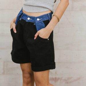 Alex Colorblock Denim Shorts in Black - FINAL SALE