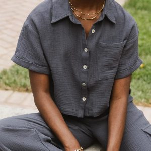 Benji Cotton Gauze Top in Slate Blue - FINAL SALE