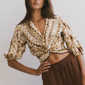 Plunge V Neckline Twist Hem Detail with Lace Trim 3/4